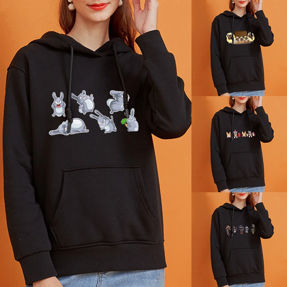 Толстовка женская с капюшоном, модный брендовый пуловер с капюшоном в уличном стиле, милый кролик, повседневные худи, весна-осень-зима
