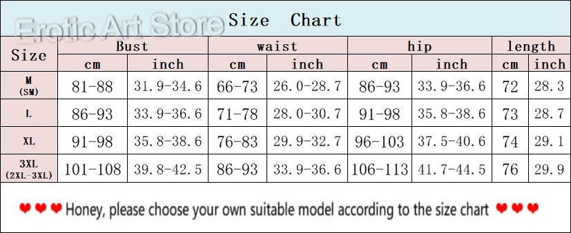 Примечание по размеру: 1. Пожалуйста, следуйте таблице размеров, чтобы выбрать размер перед покупкой товара. 2. Все еще не уверены в размере? Мы бы хотели посоветовать, основываясь на ваших измерениях груди, талии и бедер. 3. Пожалуйста, учитывайте разницу в 1-3 см в соответствии с измерениями вручную. (Все размеры указаны в см, обратите внимание: 1 см = 0,39 дюйма)