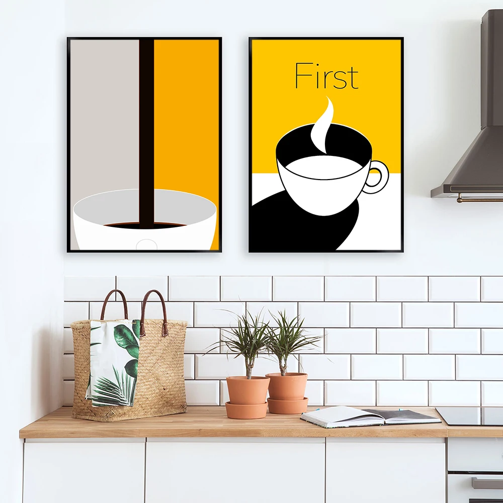 Постер и принты напитков в скандинавском ретро-стиле, холст с изображением первого кофе, современные винтажные настенные картины, Декор для дома и кафе, без рамки