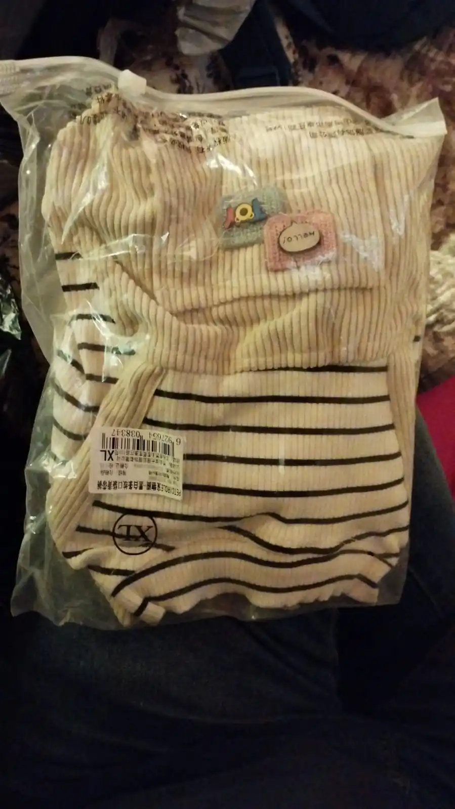 Размер подошёл идеально, очень красиво на собачке . Штанички идеальны по качеству ткани. Но у кофточки ОЧЕНЬ тонкая ткань для таких кнопок, легко порвется, при растегивании таких кнопок! Если бы знала, что настолько тонкая ткань в рубашке, то не покупала бы. Сняла две звезды за качество рубашки.