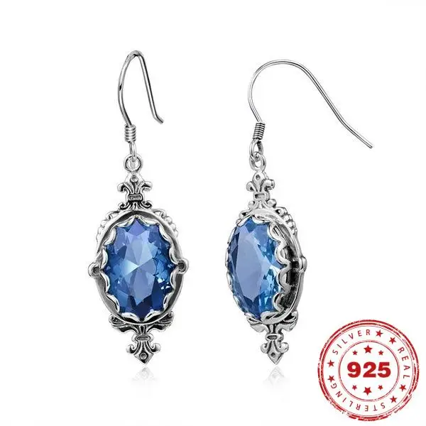 S925 Стерлинговое Серебро, топаз, голубые серьги-капли для женщин, Oorbellen, драгоценный камень, Kolczyki Orecchini, гранат, ювелирные изделия, серьги, Bijoux Femme