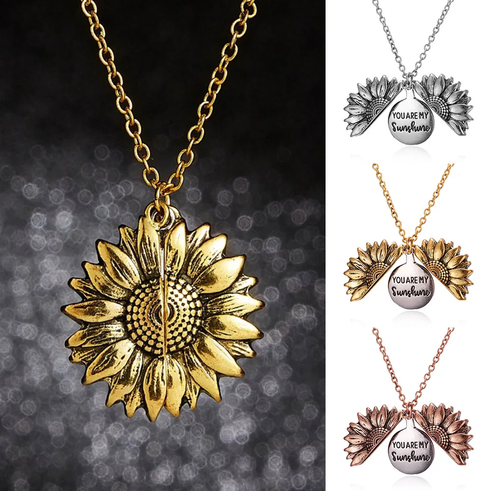 Старинный медальон Подсолнух кулон, ожерелье для женщин с открытым ...