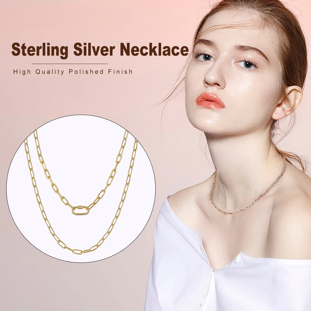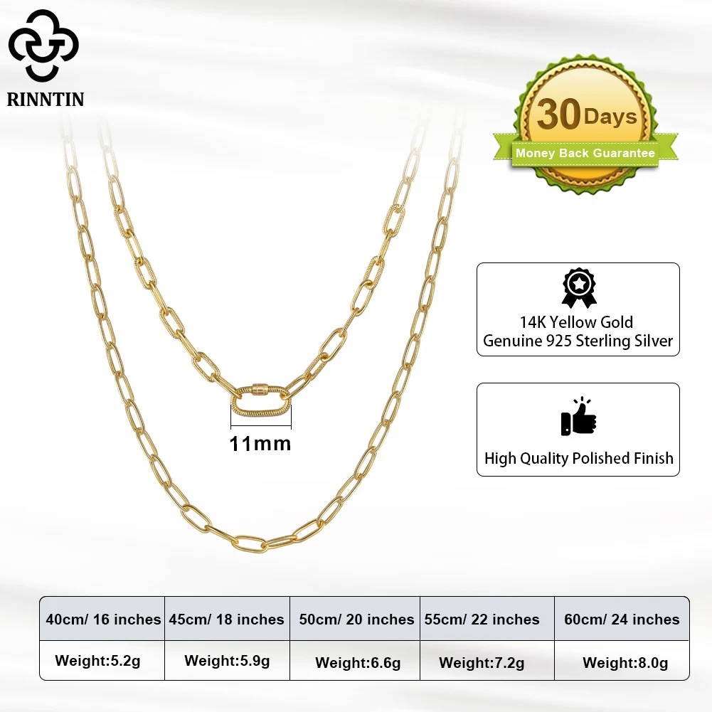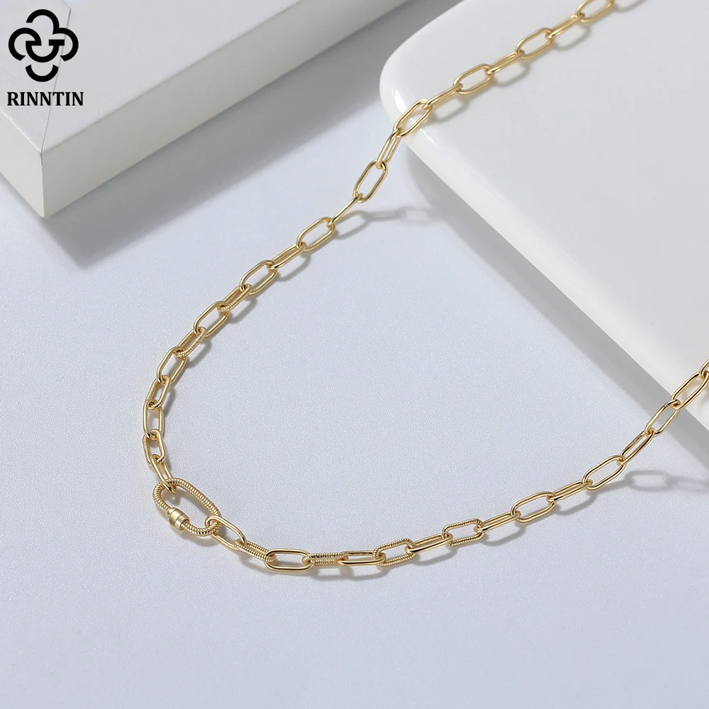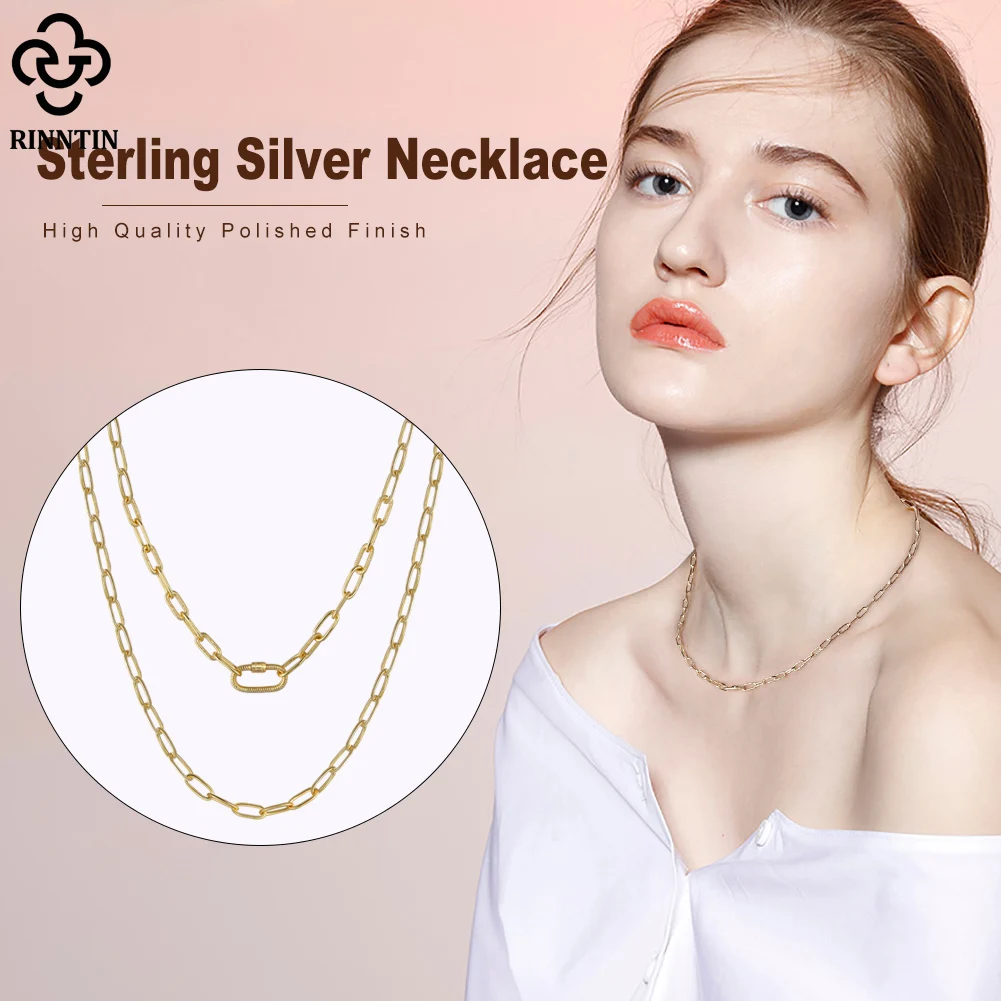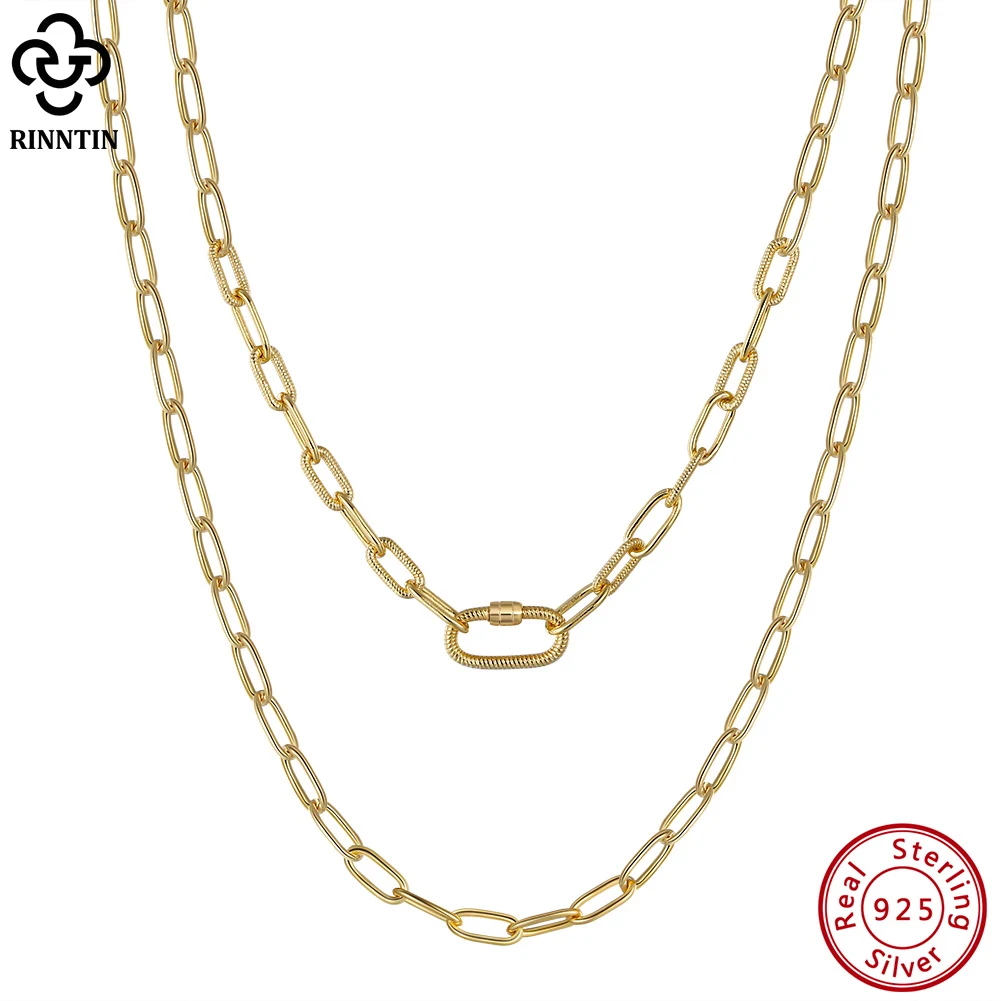 Rinntin 14K позолоченная 925 стерлингового серебра скрепбук цепь 3,2x7,5 мм с предохранительным винтом замок ожерелье для женщин ювелирные изделия SC50