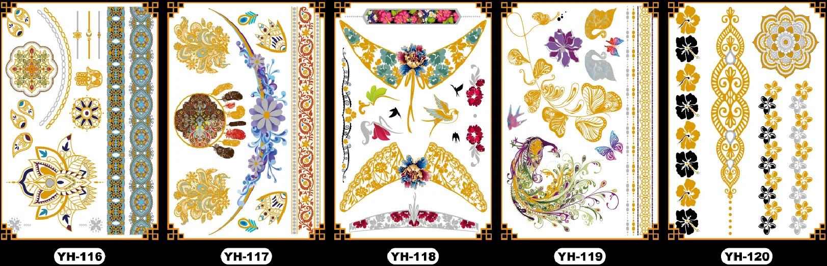 5 шт.лот, водостойкая временная татуировка, Женская хна, боди-арт, ...