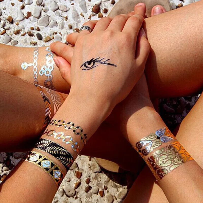 Металлические золотые татуировки серебряные водостойкие временные т...