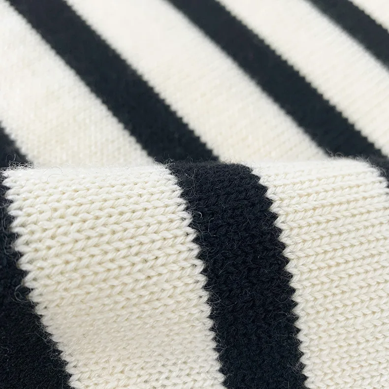 Женский трикотажный свитер в полоску, с расклешенным рукавом и воротником-хомутом