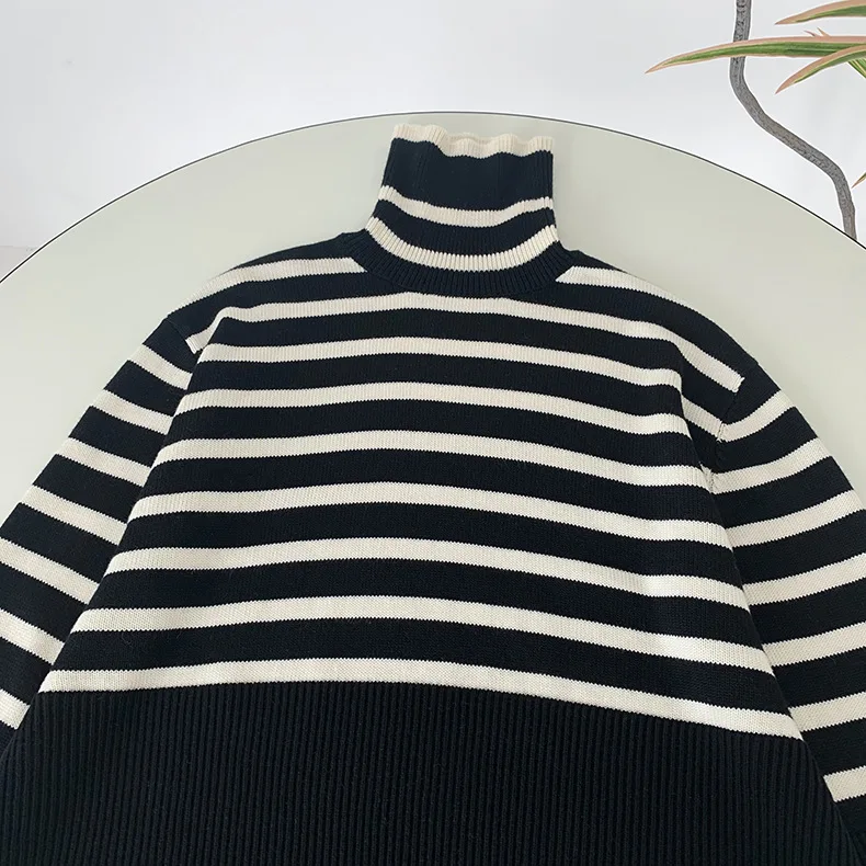 Женский свитер в полоску с высоким воротником, Свободный пуловер с ...