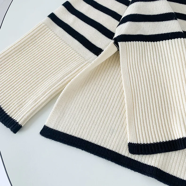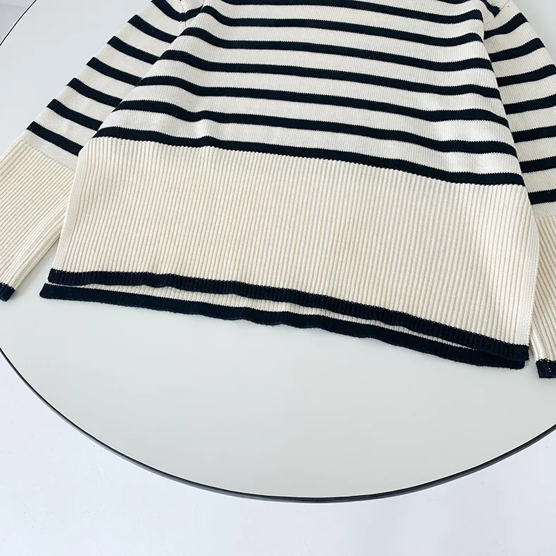 Свитер женский, с разрезом сбоку, в полоску, с длинным рукавом, сво...
