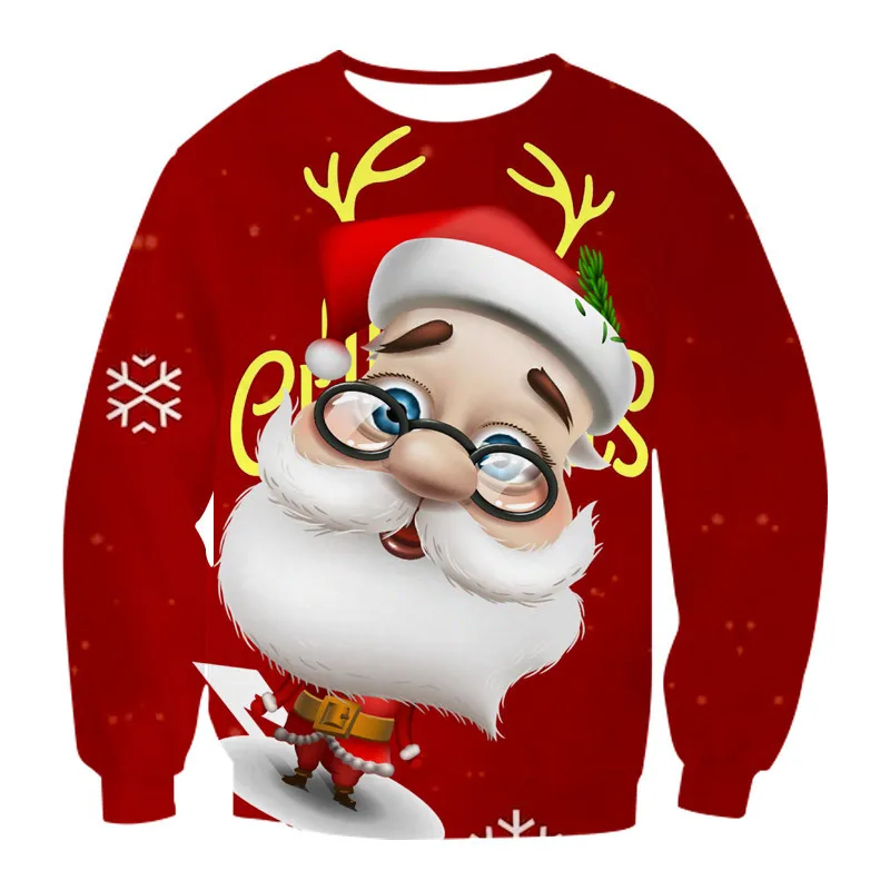 Зимняя теплая хлопковая смешанная ткань для мальчиков и девочек детская Рождественская Толстовка с мультяшным принтом снеговика детская одежда с Санта-Клаусом
