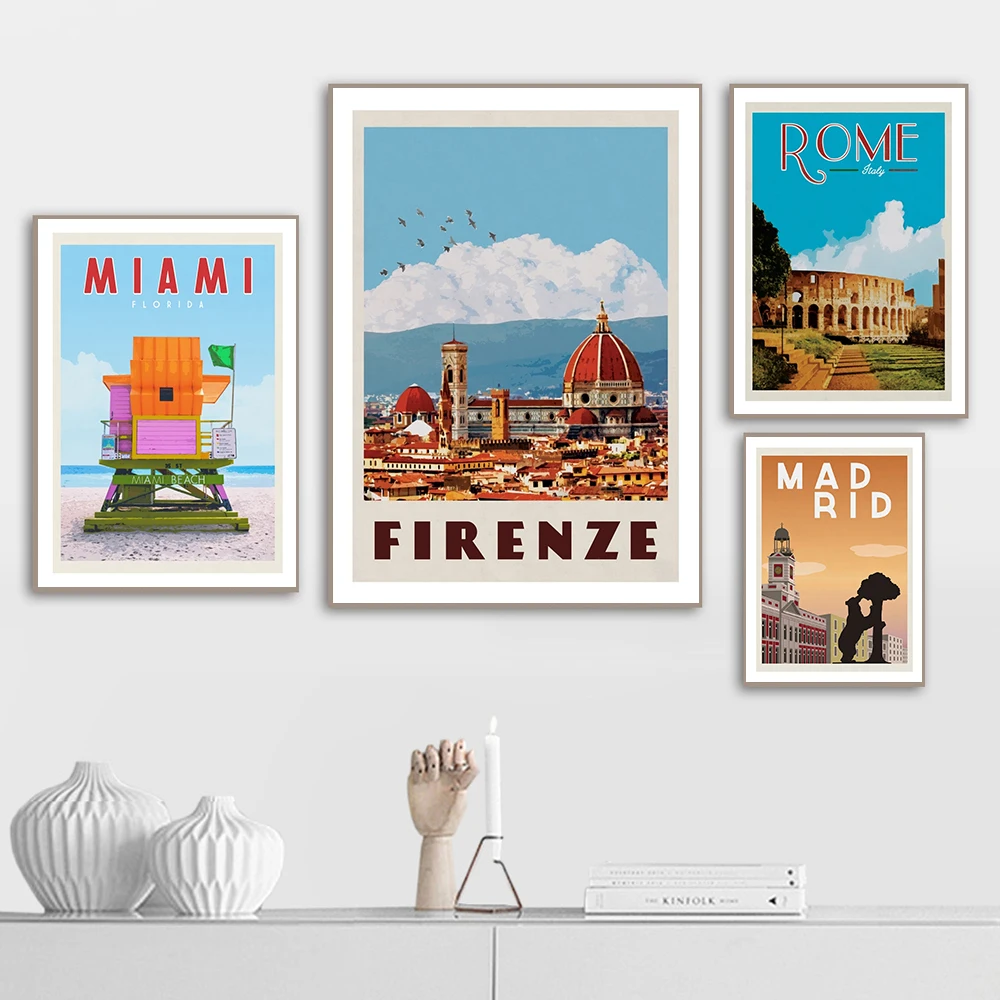 Настенные картины Нью-Йорк, Рим, Майами, Мадрид, город, путешествия, Современная Картина на холсте, Постер и печать, пейзаж, скандинавский зал, домашний декор