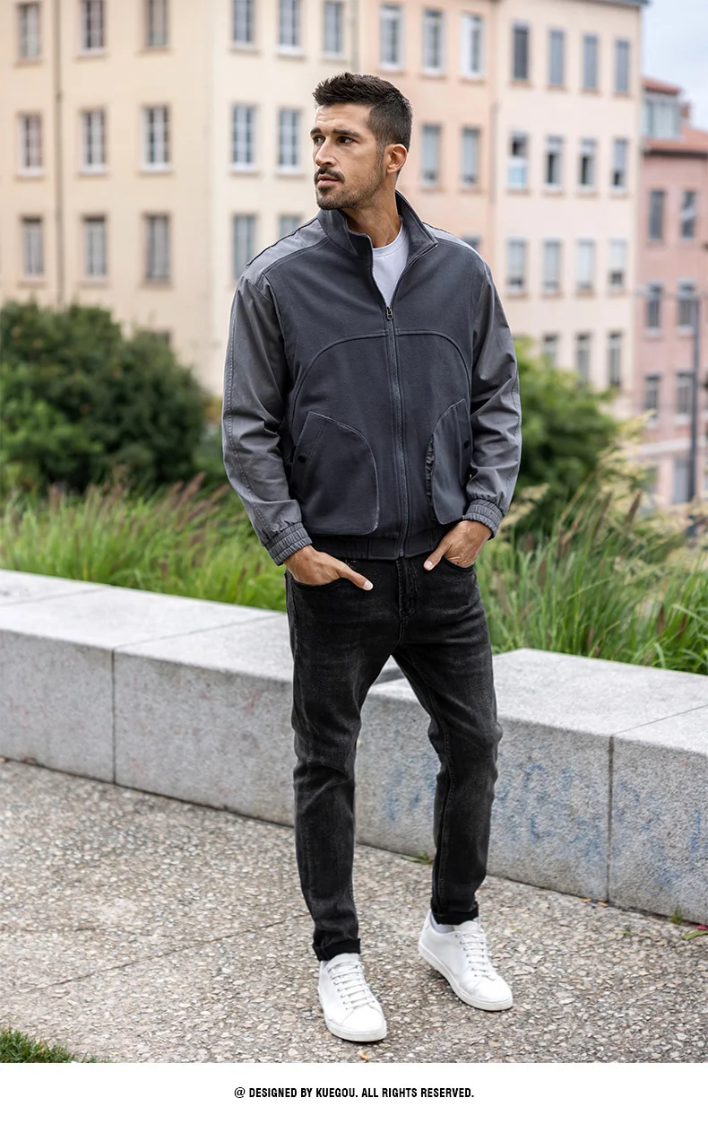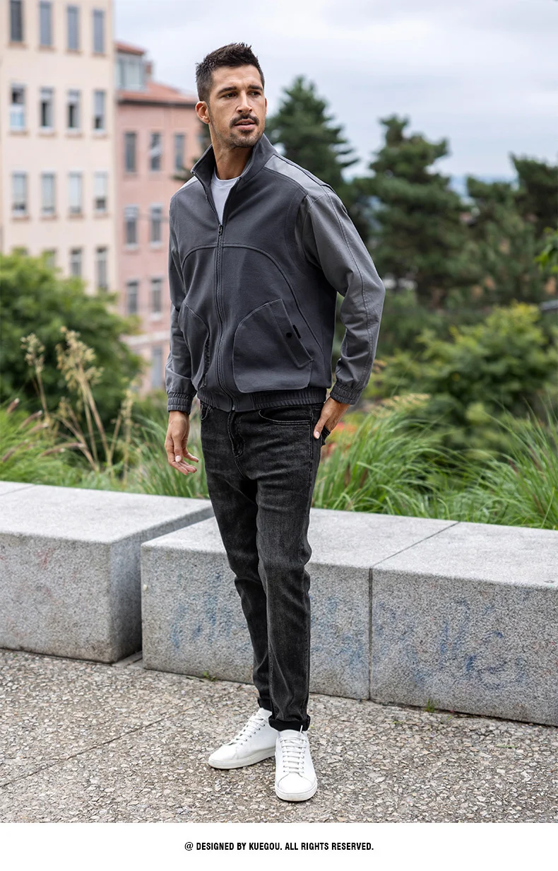 KUEGOU 2022 Весенняя черная хлопковая повседневная куртка мужские пальто для верхней одежды Японская уличная Тактическая Военная винтажная одежда 8822