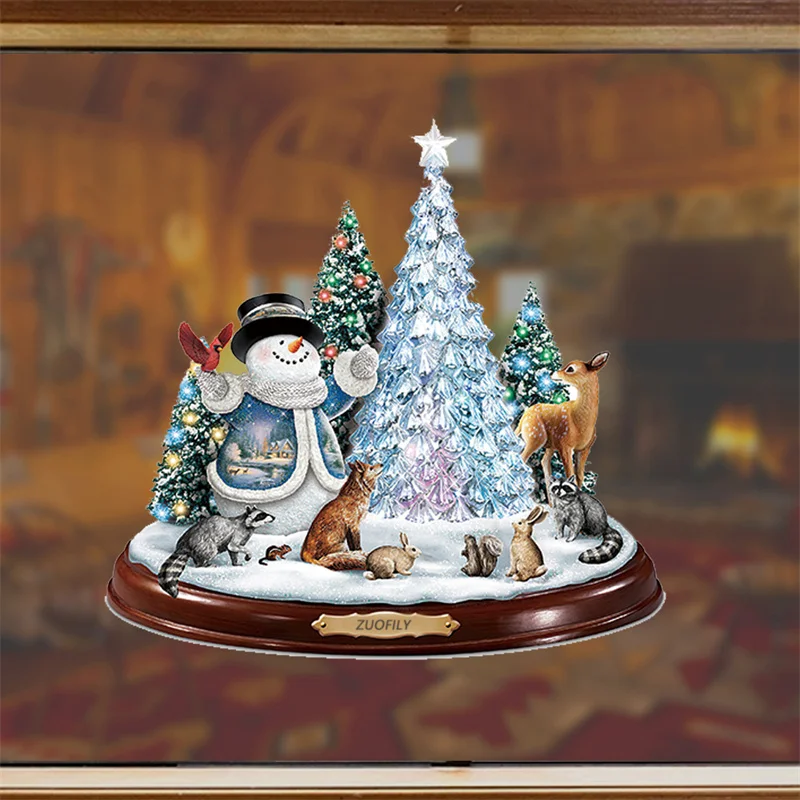Новинка 2021, Рождественская елка, вращающаяся скульптура, поезд, Санта, наклейки на окна, рождественские украшения, зимние домашние украшения, Рождество
