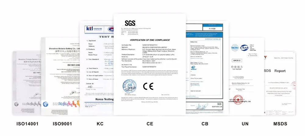 Сертификаты CE,RoHs,FCC,KC,UN38.8.