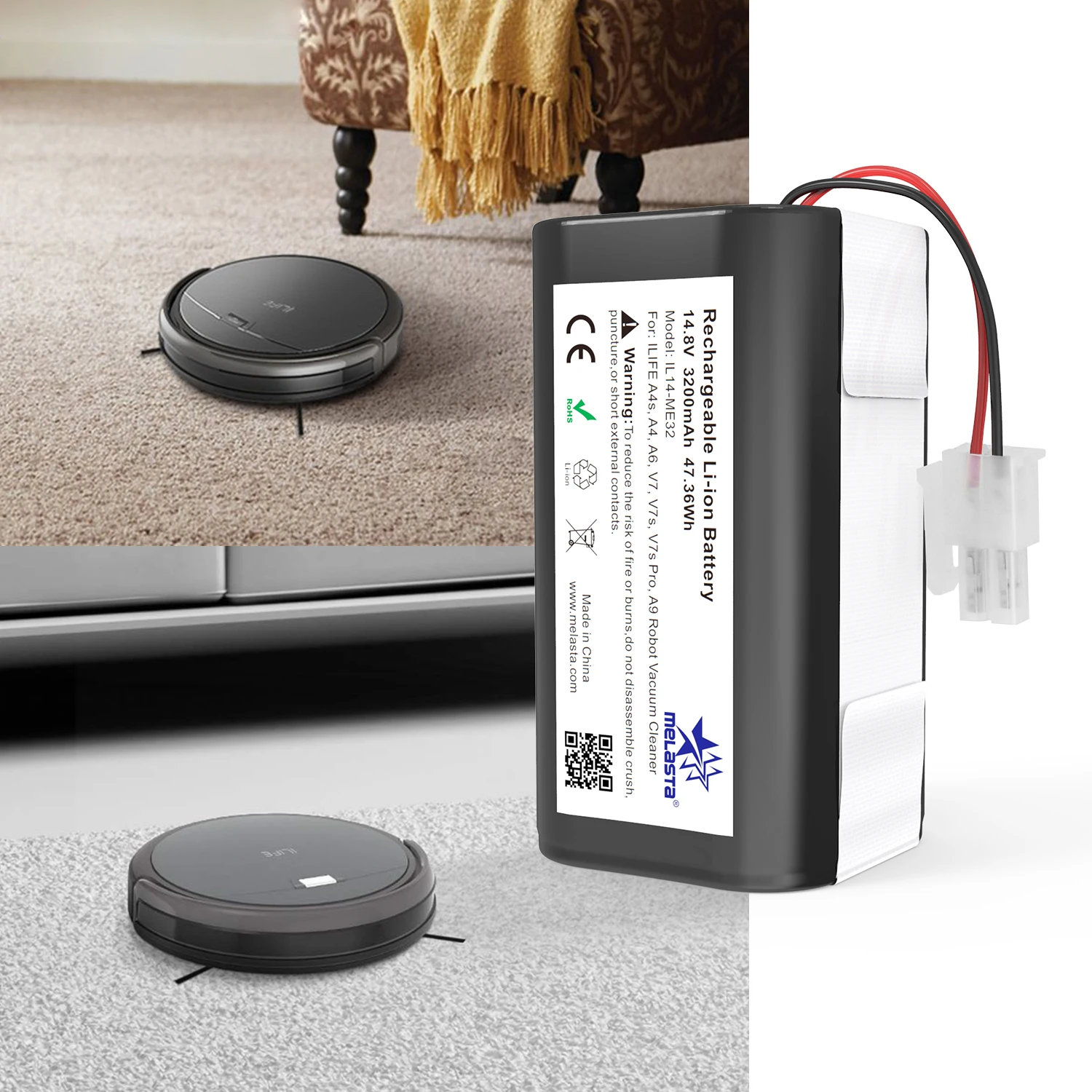 Аккумуляторная литий-ионная батарея для робота-пылесоса ILIFE ecovacs A4s, A4, A6, A9, V7, V7s, V7s Pro Robotic Chuwi, 14,8 в, 3200 мАч