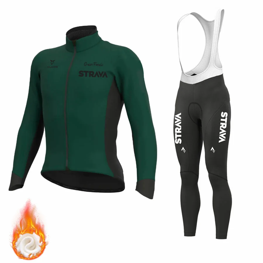 Зима 2022 STRAVA Теплая Флисовая одежда для езды на велосипеде MTB Ropa Ciclismo комплект уличных велосипедных комбинезонов с длинным рукавом теплая велосипедная одежда