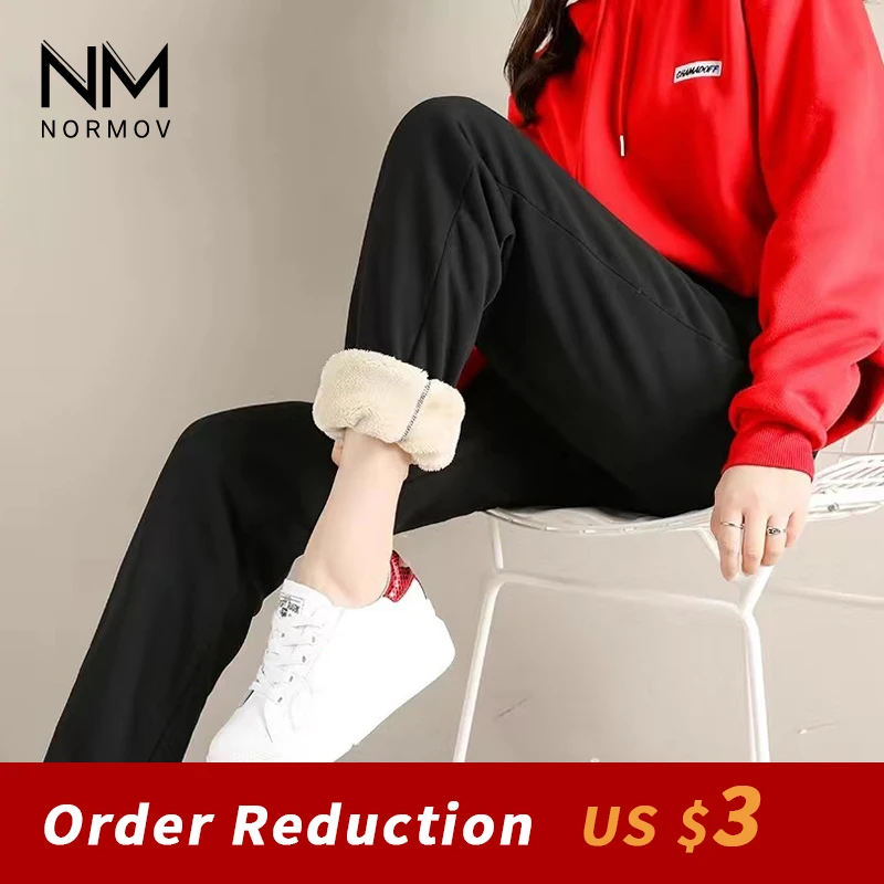 Теплые леггинсы NORMOV, женские зимние теплые бархатные кашемировые плотные брюки, модные повседневные свободные леггинсы с прямыми штанинами, женские теплые брюки