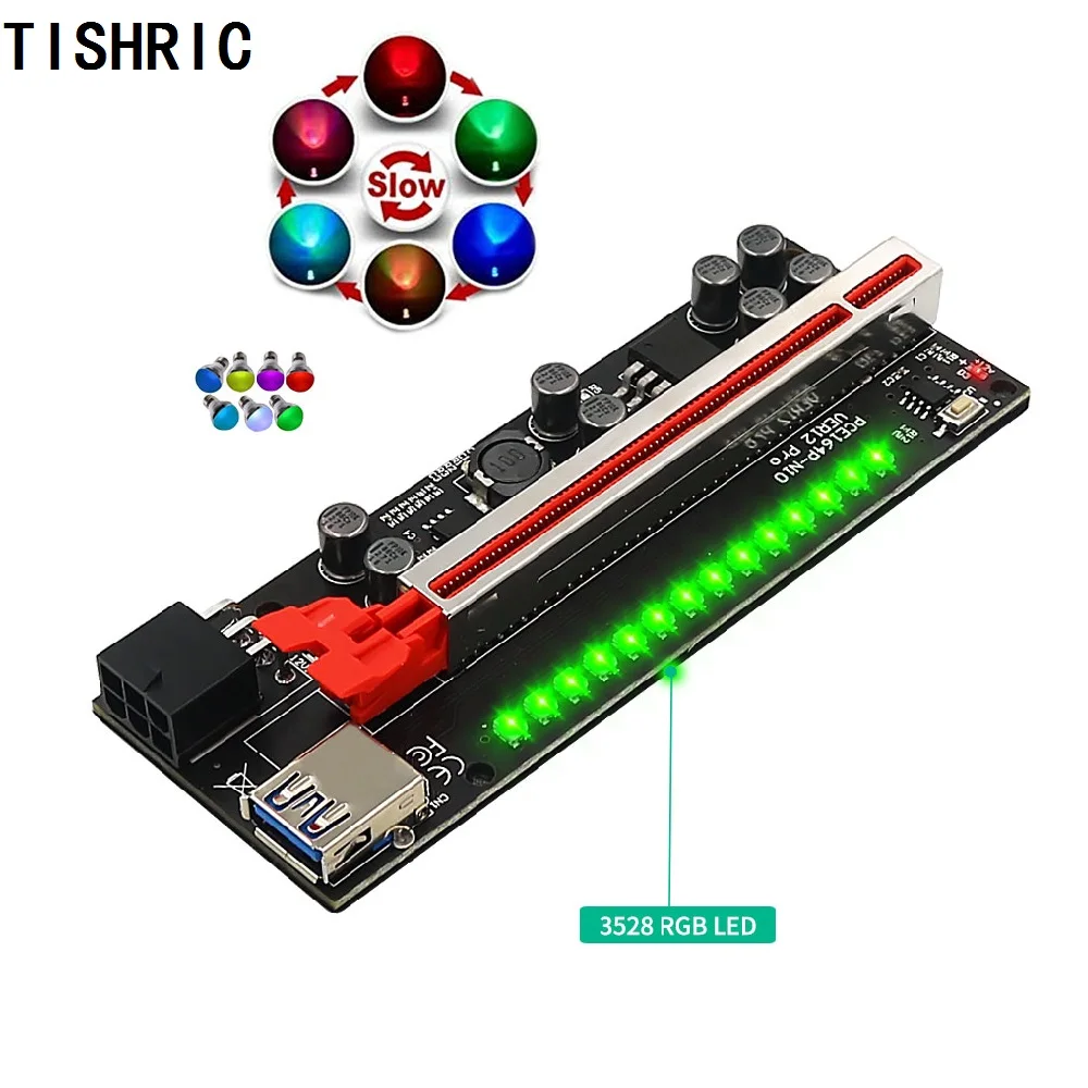 Красочный переходник TISHRIC VER12 Pro PCI-E PCIE PCI E PCI экспресс-карта GPU 1X X16 6pin адаптер кабель ETH Майнинг переходник для видеокарты