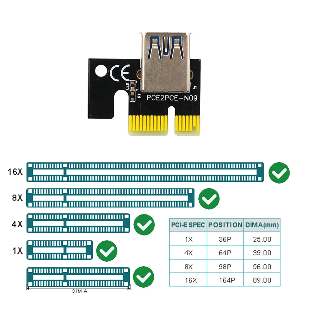 1.Очень подходит для установки горного оборудования Ethereum.2. Драйвер не требуется.3. 4 отверстия на подъемном зажиме используются для установки.4. Используйте светодиодный индикатор и f Используйте s на печатной плате.5. Блок питания видеокарты использует 8 твердых конденсаторов, чтобы сделать Электропитание видеокарты более стабильным и безопасным.6.6Штифт +4PIN интерфейс делает графическую карту независимой от материнской платы, чтобы уменьшить нагрузку на материнскую плату. Это снижает нагрузку на материнскую плату при подключении нескольких графических карт.7. Разъем PCI-E использует Многослойные экранированные кабели, которые могут быть подключены к максимуму 3 м без ослабления сигнала.8. USB кабель мягкий и стабильный, легко перемещается, и видеокарта может быть размещена по желанию.9. Слот для карты оснащен фиксирующей пряжкой, что облегчает удаление видеокарты и фиксацию видеокарты, а видеокарта не отпадет от слота.10. Шнур питания использует провод из чистой меди, чтобы избежать ожогов во время использования.