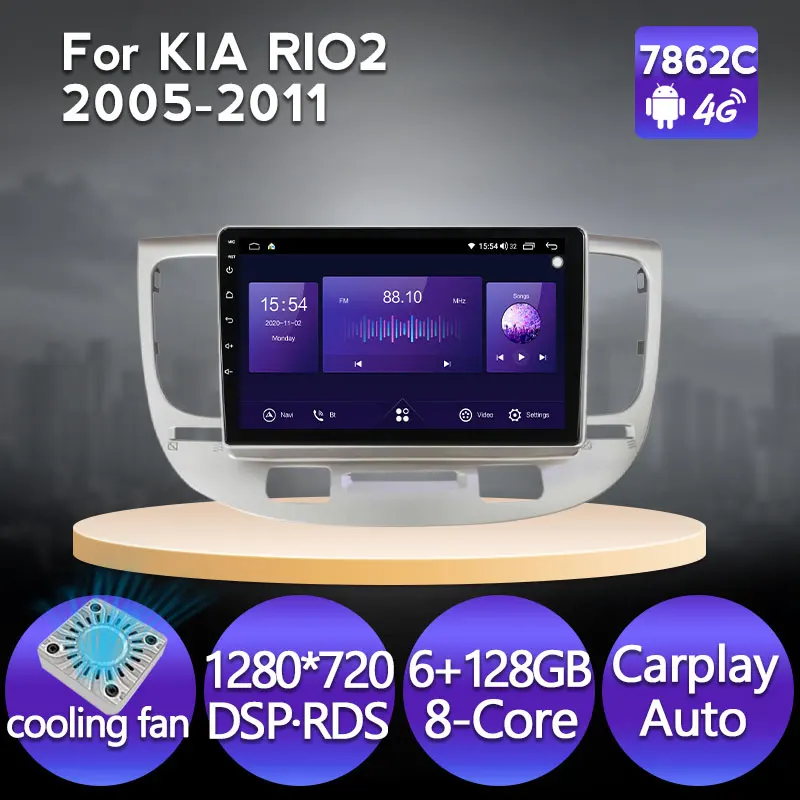Автомобильная Мультимедийная система Navifly, 9 дюймов, 8 ядер, 6 ГБ + 128 Гб, Android 11, Стерео Авторадио для Kia RIO 2 RIO2 2005-2011 Carplay DSP 1280*720