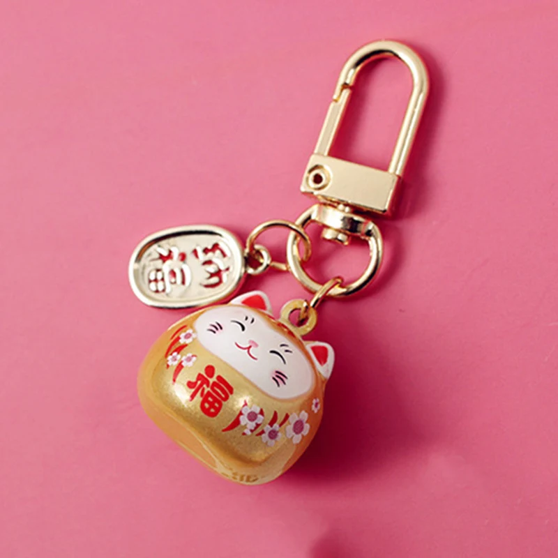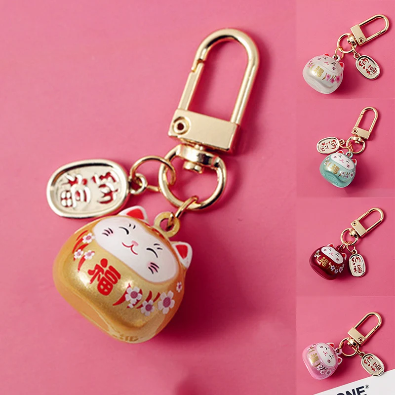 Милые японские Брелоки для ключей с кошкой на удачу, Брелоки для ключей от машины, украшение, подвеска с колокольчиком и водяным звуком, подвеска для Airpods, подарок для пары, цвет мечты
