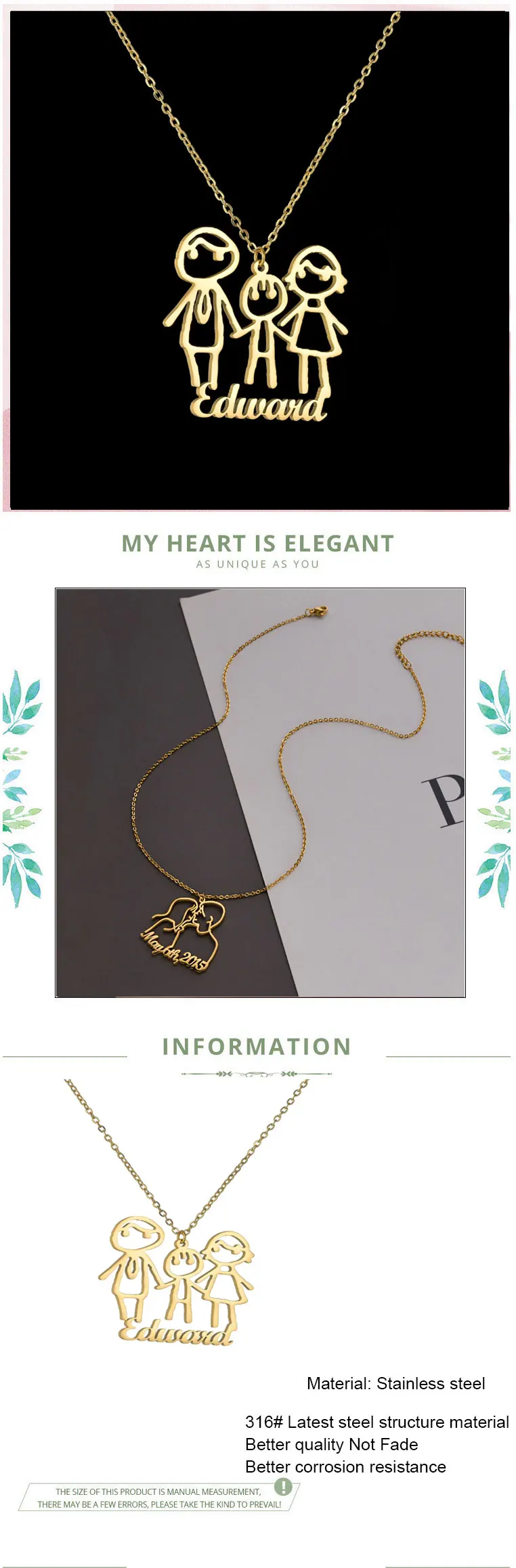 Индивидуальное ожерелье с изображением семьи из нержавеющей стали, персонализированный логотип, картина для пар, подвеска, художественное изделие ручной работы, подарок