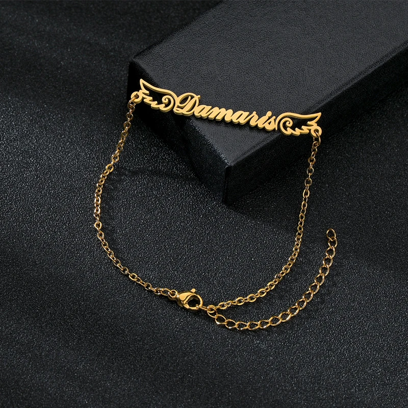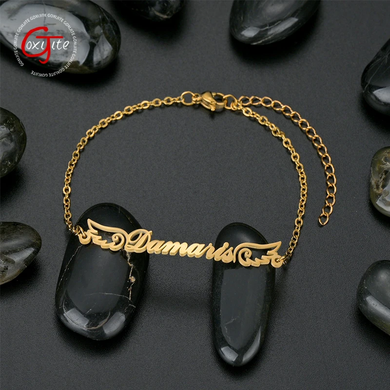 Браслет Goxijite с именем на заказ для женщин, для маленьких девочек, персонализированные браслеты из нержавеющей стали с крыльями и фианитами, бижутерия в подарок