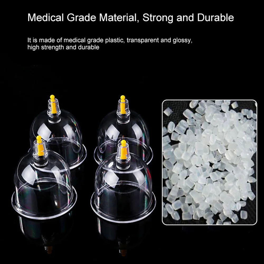 1. Привлекательный дизайн и прочный, прочный и ударопрочный материал.2. Прозрачный корпус: легко регулировать внутреннее давление, и внутренняя обработка может быть четко видна.3. Безопасное и хорошее уплотнение: Гладкий край дуговой чашки увеличивает площадь, соединяющую с кожей, что подтверждает лучшее уплотнение.4. 7 размеров чашек подходят для всех частей тела.5. Простота в эксплуатации: огонь и электричество не требуются, безопасны и надежны, просты в эксплуатации.