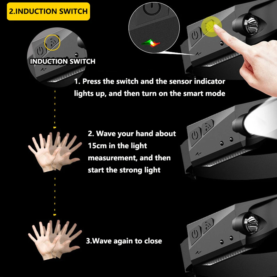 2 упаковки, светодиодный головной фонарь с датчиком, 2400 мАч