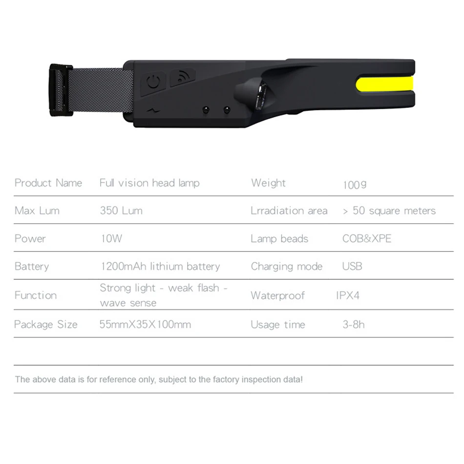 Налобный фонарь с COB матрицей, индукционный светодиодный фонарь со...