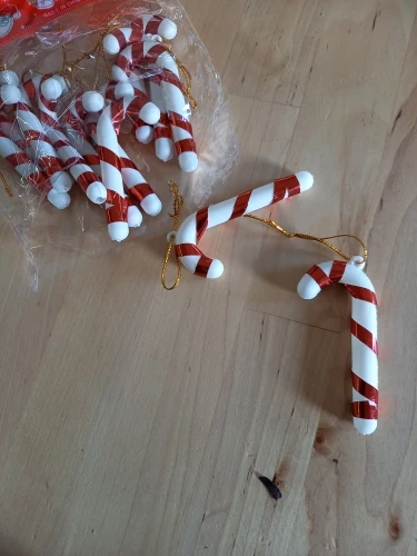 correspond à la description mais cela est plus fragile que dans la description sur 12 j'ai deux sucre d'orge de cassé au pied mais bon pour faire des petits décor dans le sapin pas trop cher et jolie et qui change de l'ordinaire franchement je recommande livraison rapide sous 10 jours