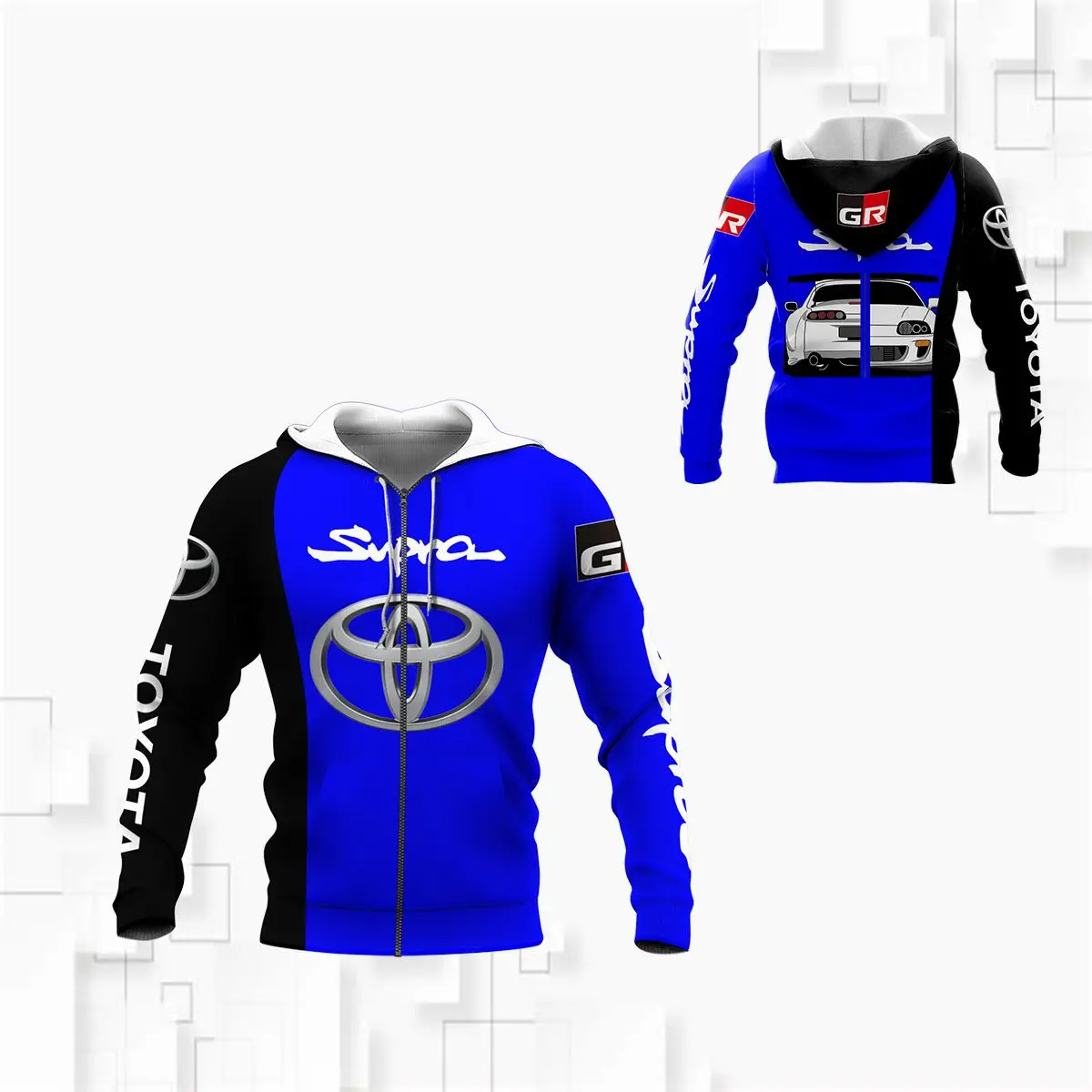 Весенняя толстовка с капюшоном для отдыха с логотипом автомобиля Toyota, Высококачественная куртка на молнии в стиле Харадзюку, модная спортивная одежда в стиле хип-хоп
