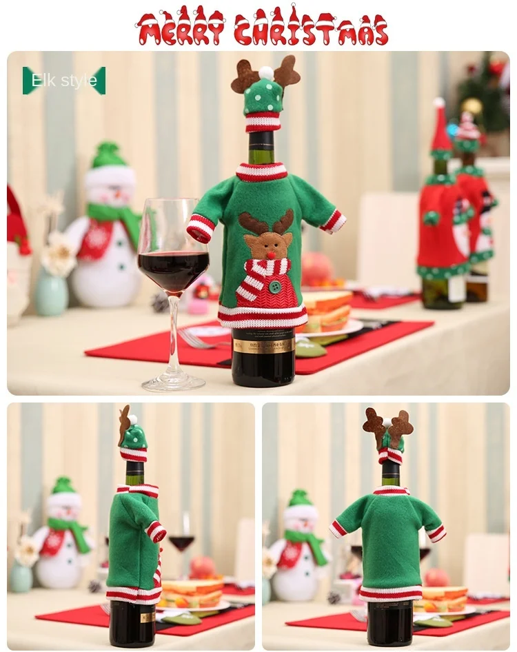 Рождественский набор для украшения винной бутылки, чехол для бутылк...