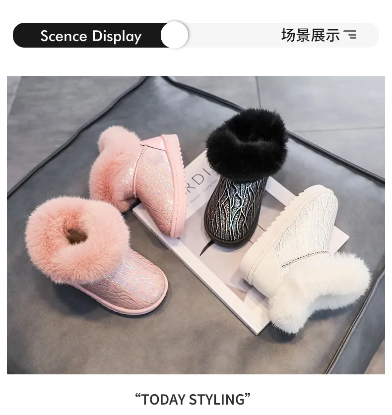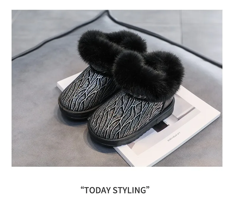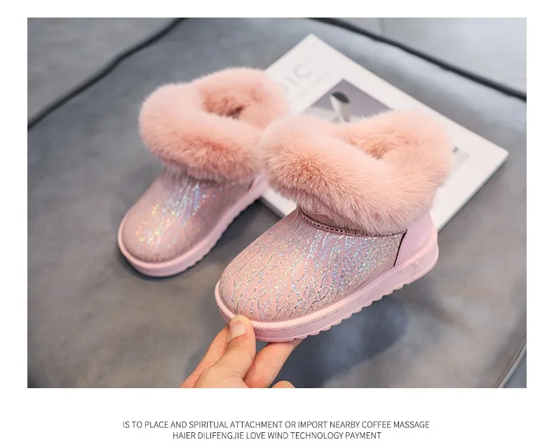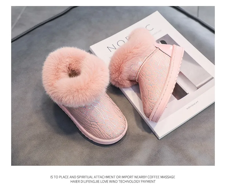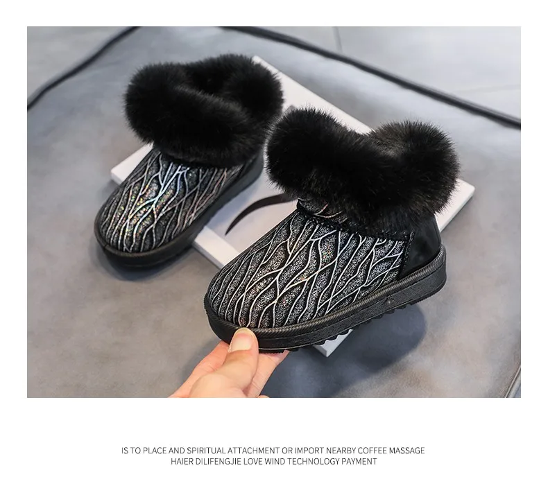 Детские зимние ботинки, модные пушистые теплые плюшевые Водонепроницаемые Детские ботильоны 19-37, Детская удобная обувь с мехом для мальчиков и девочек
