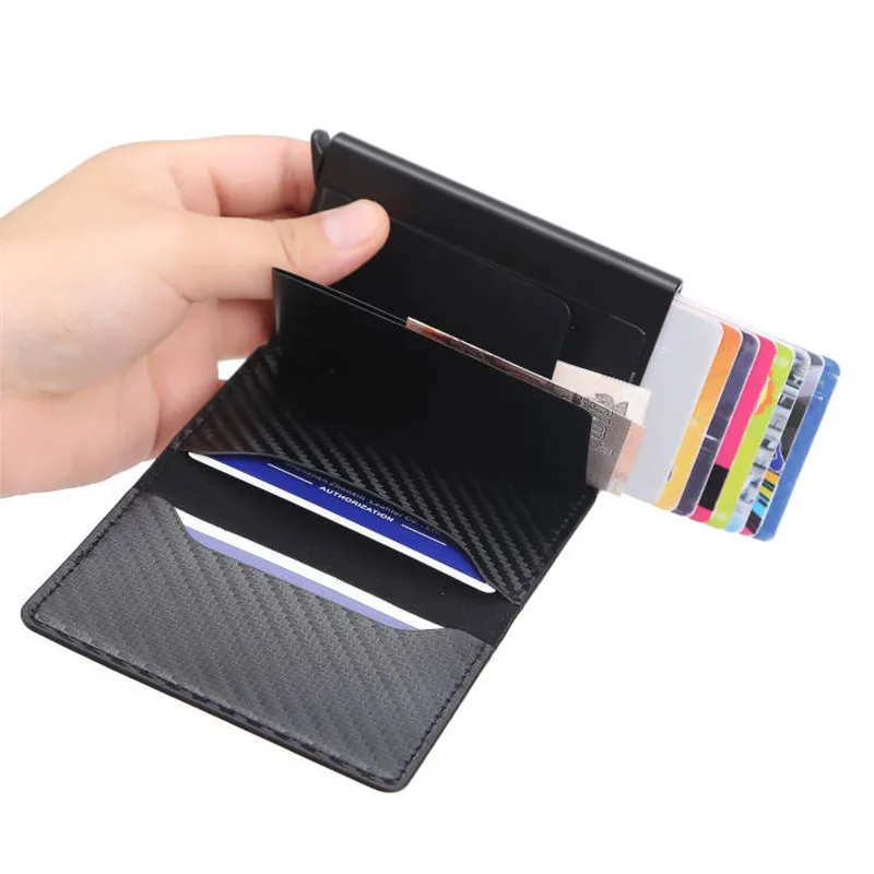 Новинка, мужской держатель для кредитных карт из углеродного волокна с RFID-блокировкой, кожаный держатель для карт, защитный кошелек для женщин и мужчин