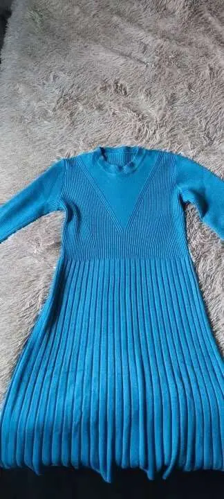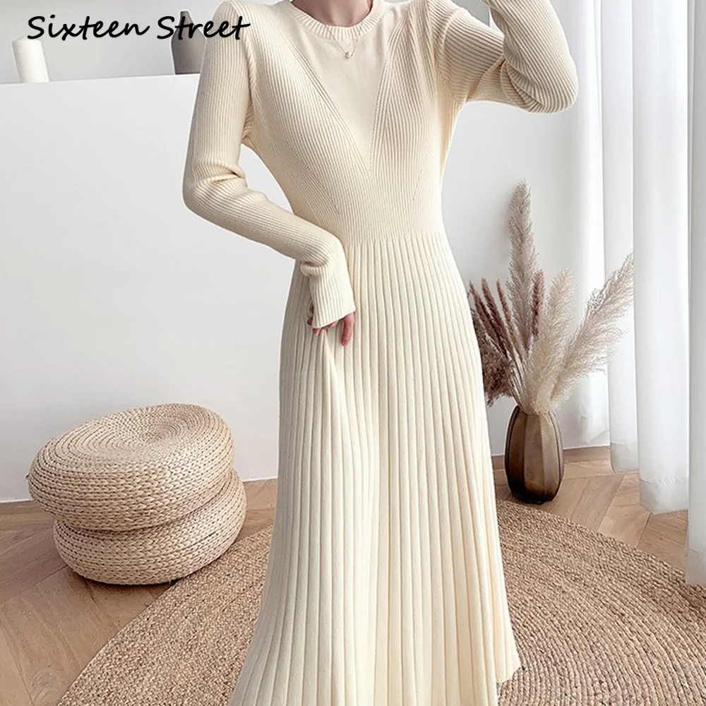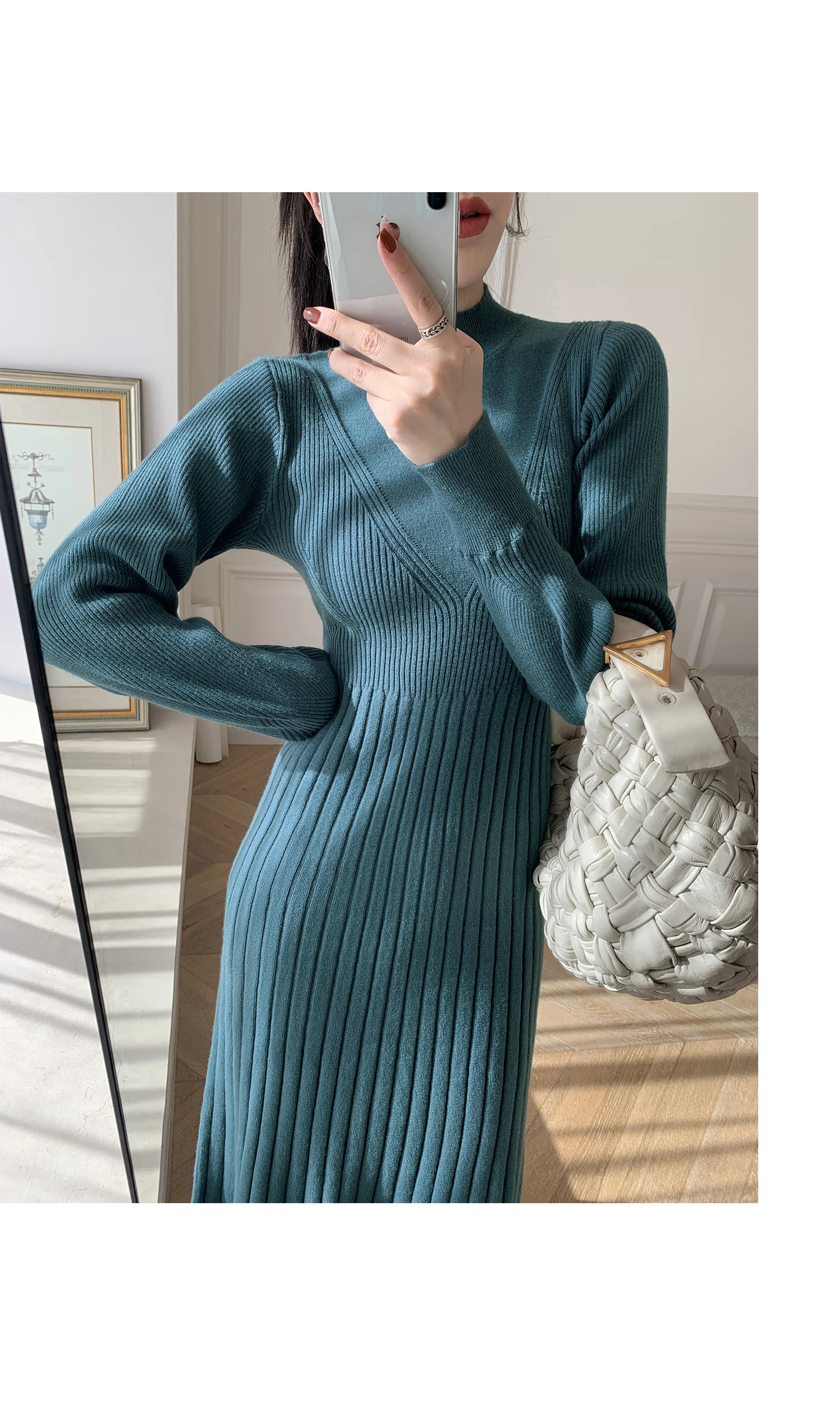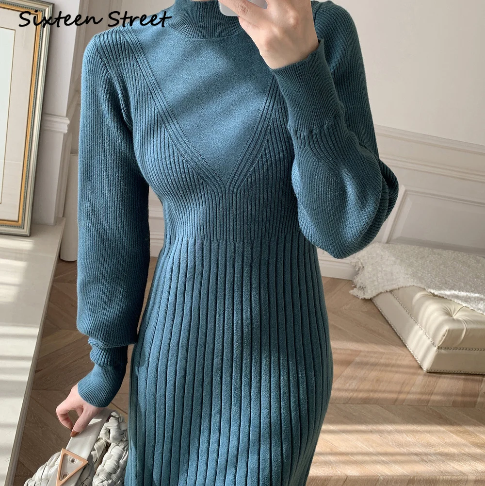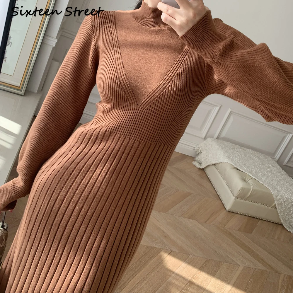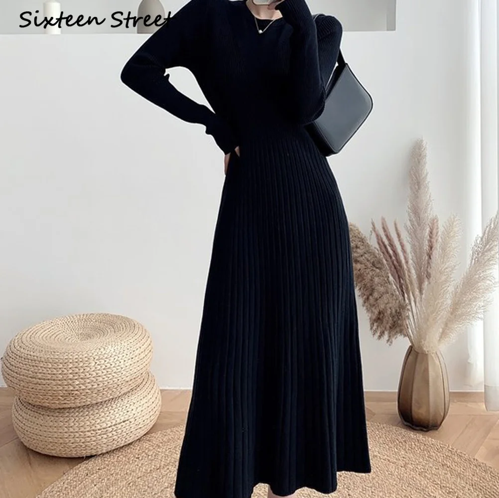 Женское трикотажное платье-свитер, шерстяное платье макси в Корейск...