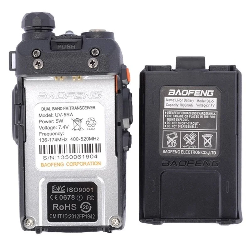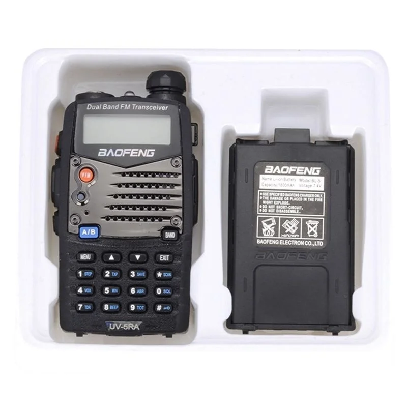 Особенности:-Двухдиапазонный портативный приемопередатчик отображает функциональное меню на дисплее светодиодный».-Кодирование DTMF.-Литий-ионный аккумулятор большой емкости.-Коммерческий FM-радиоприемник (65 МГц ~ 108 МГц).-Включает 105 программируемых кодов «DCS» и 50 программируемых кодов конфиденциальности «CTCSS».-Функция «VOX» (передача с голосовым управлением).-Функция будильника.-До 128 каналов памяти.-Широкополосный (широкий)/узкополосный (узкий), выбор.-Высокая мощность/низкая (5 Вт/1 Вт) на выбор.-Подсветка дисплея и программируемая клавиатура.-Функция «Звуковой сигнал» на клавиатуре.-Двойные часы/двойной прием.-Выбираемый Шаг частоты 2,5/5/6, 25/10/12, 5/25 кгц.-Функция «смещение» (Смещение частоты для доступа ретранслятора).-Функция экономии батареи «SAVE».-Программируемая передача по таймеру.-Выбор режима сканирования.-Функция блокировки занятых каналов «BCLO».-Встроенное сканирование RX CTCSS/DCS.-Встроенный светодиодный фонарик.-Программируется ПК.-Порог уровня «шумоподавитель» регулируется от 0 до 9.-Поперечный прием.-Тон окончания передачи.-Встроенный замок для ключей.Особенности:Общие:Частотный диапазон: 65 МГц ~ 108 МГц (только коммерческий прием FM-радио) VHF: 136 МГц ~ 174 МГц (Rx/Tx). УВЧ: 400 МГц ~ 480 МГц (Rx/Tx)Каналы памяти: до 128 каналовСтабильность частоты: 2,5 ppmЧастотный шаг: 2,5 кГц/6,25 кГц/10 кГц/12,5 Кгц/25 кГцСопротивление антенны: 50 ΩРабочая температура: -20 ℃ + 60 ℃Напряжение питания: перезаряжаемый литий-ионный мАч 7,4 В/1800Потребление в режиме ожидания: ≤ 75 мАПотребление при приеме: 380 мАПотребление при передаче: ≤ 1,4 АРежим работы: простой или полудуплексныйРабочий цикл: 03/03/54 мин. (Rx/Tx/Standby)Размеры: 58 мм × 110 мм × 32 ммВес: 130 г (приблизительный)Передатчик:RF Мощность: 5 Вт/1 ВтТип модуляции: FMКласс излучения: 16K φ F3E/11K φ F3E (W/N)Максимальное отклонение: ≤ ± 5 кГц/≤ ± 2,5 кГц (W/N)Паразитные выбросы: < -60 дБПриемник:Чувствительность приемника: 0,2 мкВ (при 12 дБ SINAD)Интермодуляция: 60 дБВыход Аудио: 1000 мВтСелективность соседних каналов: 65/60 дБКомплектация:1 х портативное радио1 х Бесплатный наушник1 х литий-ионный аккумулятор1 х антенна1 х Зажим для ремня1 зарядное устройство1 х слинг1 x Руководство пользователя