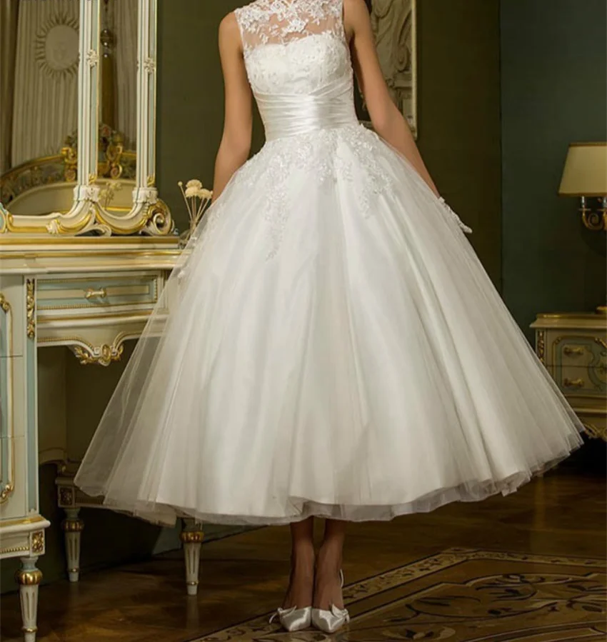 Винтажная аппликация MYYBLE белое свадебное платье без рукавов длиной ниже колена женское свадебное платье длиной ниже колена ретро в горошек Свадебное платье 2021