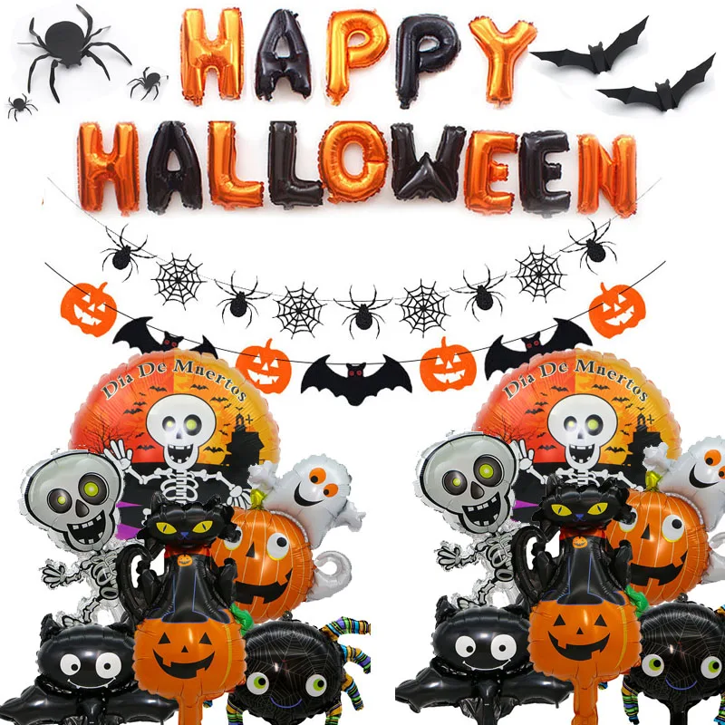 Хэллоуин вечерние украшения набор призрак Фестиваль горизонтальная 3D наклейка в форме летучей мыши Тыква головы флаг 5 шт воздушный шар