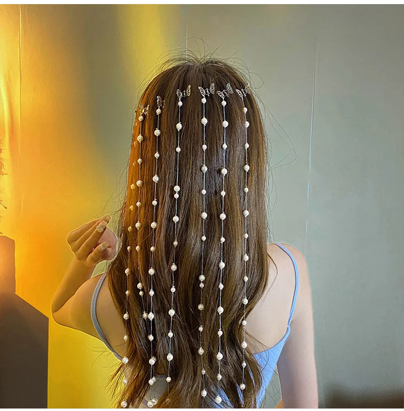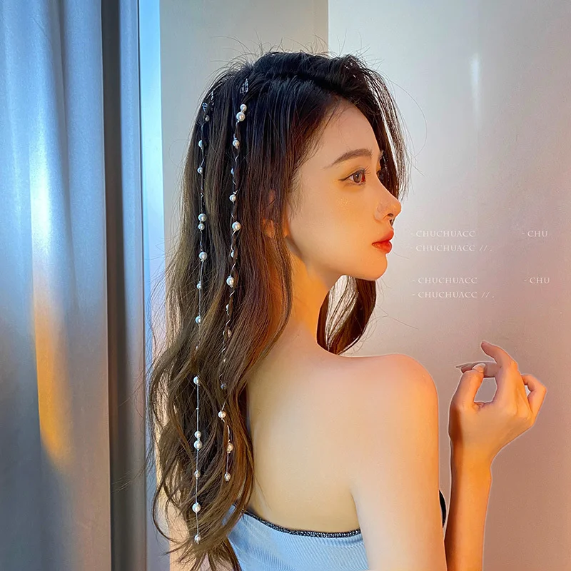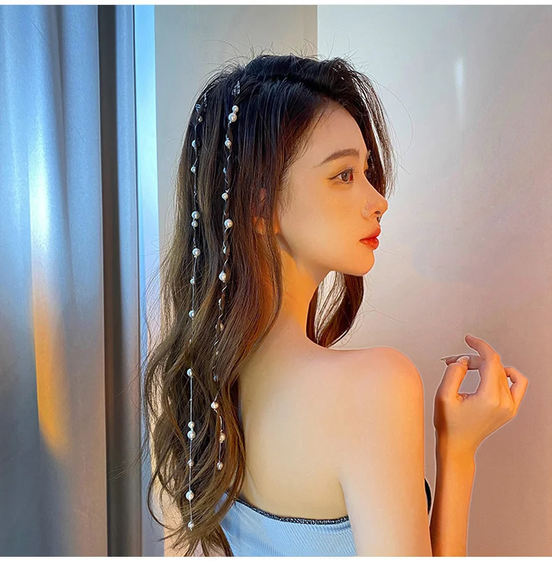 Роскошная романтичная Свадебная блестящая повязка на голову головной убор Свадебные аксессуары для волос ювелирные изделия подарок жемчужный Бант Шпилька для волос цепочка головной убор для девочек