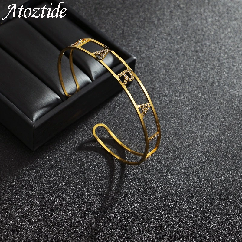 Название:Женский браслет с надписью Atoztide, золотой браслет из нержавеющей стали с кристаллами, подарок на день рождения