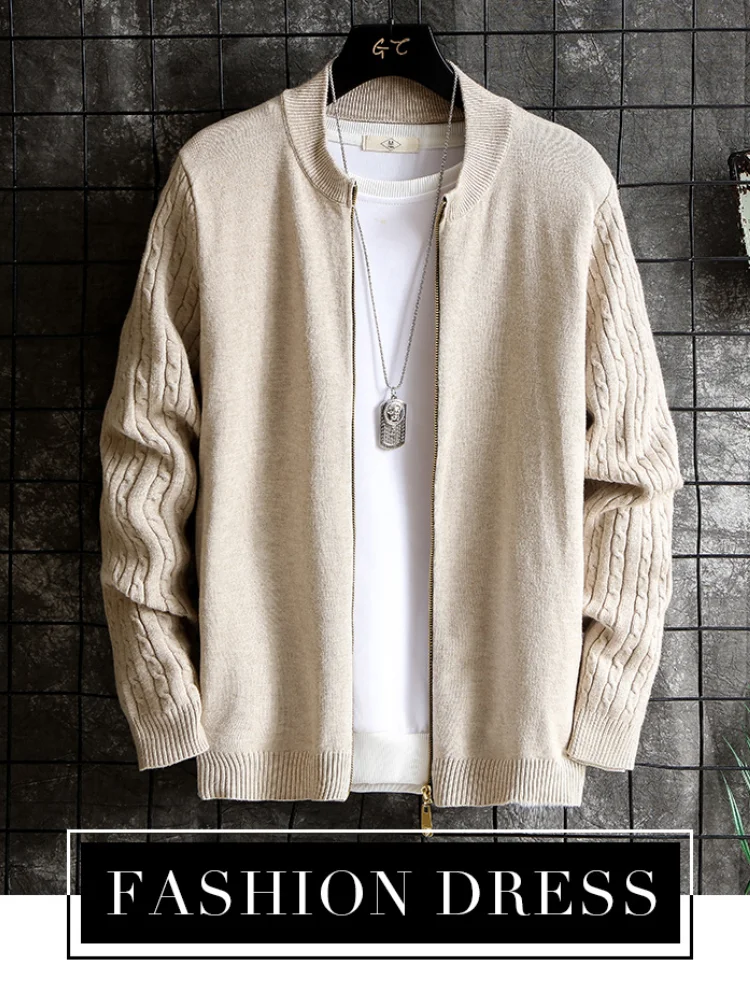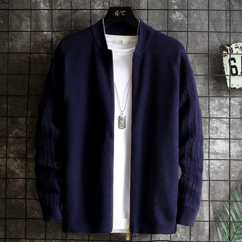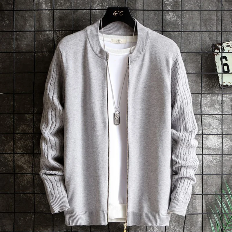 Кардиган мужской на молнии, повседневный модный простой однотонный базовый свитер, Осень-зима