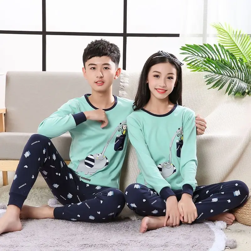 Детская Хлопковая пижама От 8 до 18 лет, новинка 2021, осенне-зимняя Пижама с животными для мальчиков, одежда, комплекты пижам для девочек-подростков, одежда для больших детей
