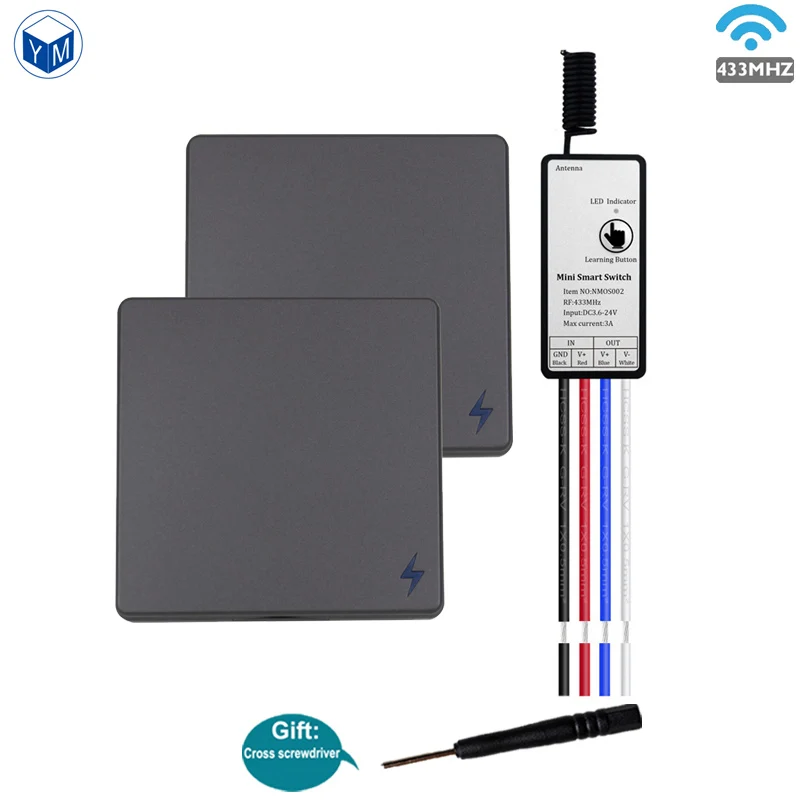 Миниатюрное реле 433 МГц, беспроводной Радиочастотный переключатель с дистанционным управлением, передатчик питания, постоянный ток 3,7 в, 6 в, 12 В, 24 В, 1 канал, светодиодный индикатор, микроприемник