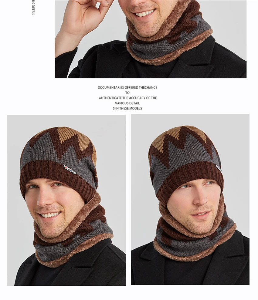 Шапка-бини трикотажная мужская с защитой от ветра и шарфом
