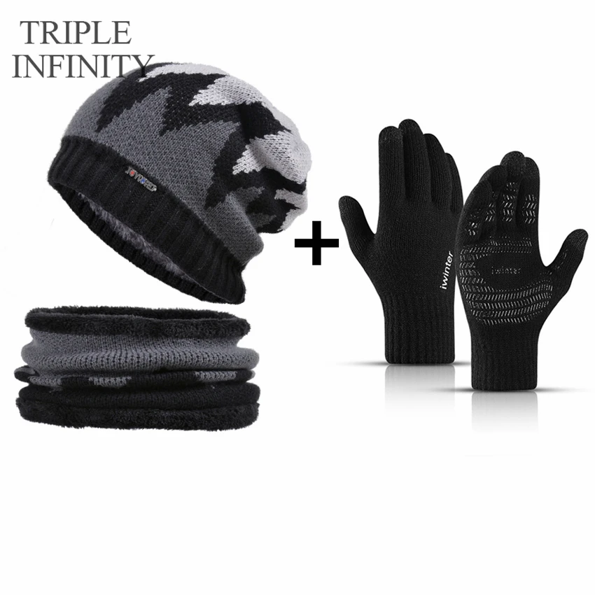 Модные шапки TRIPLE INFINITY, облегающие шапки, Зимняя мужская шапка, плотные теплые пыленепроницаемые пушистые мужские вязаные шапки, шапка, мужская шапка