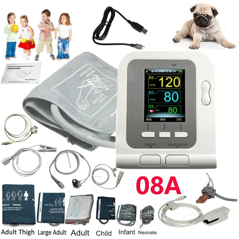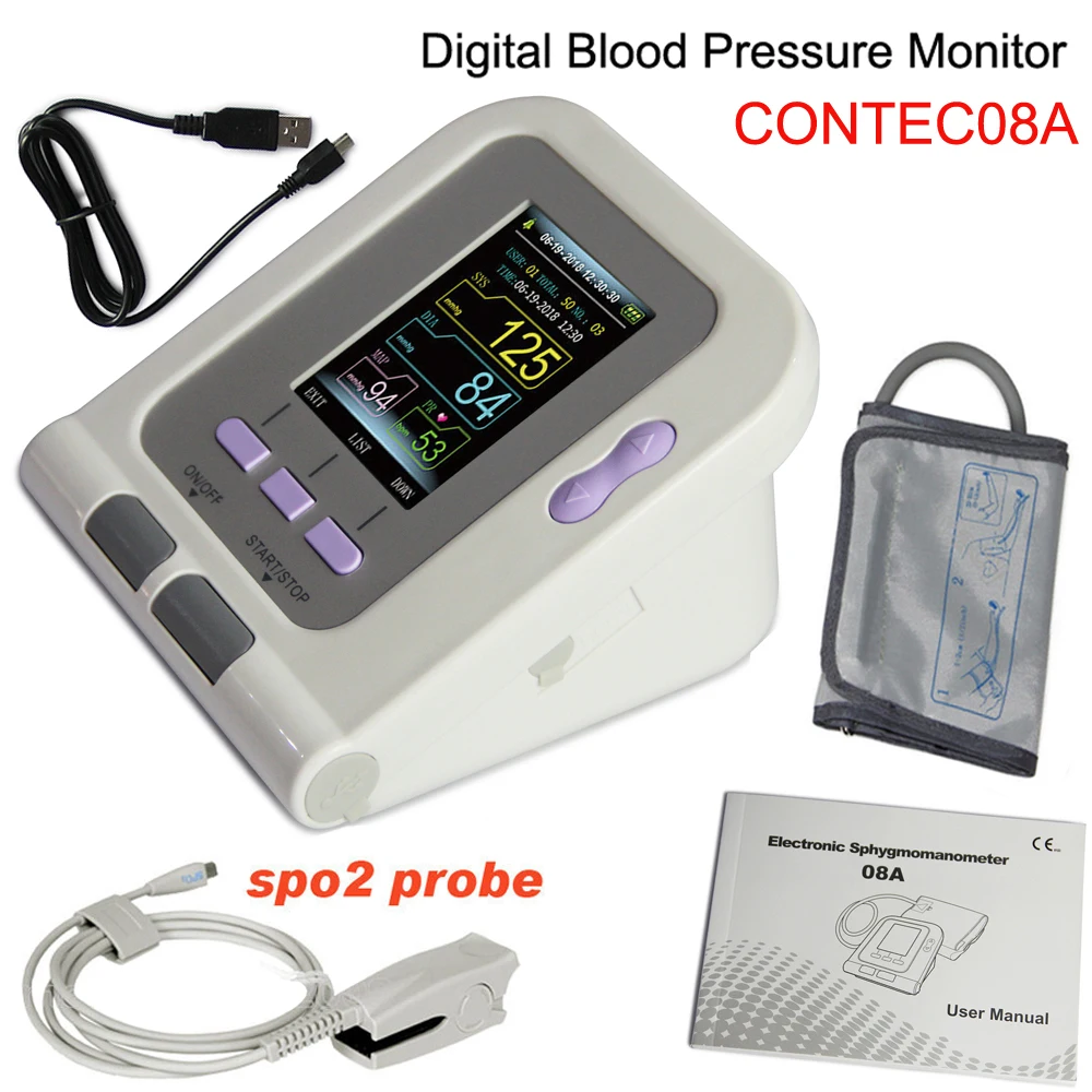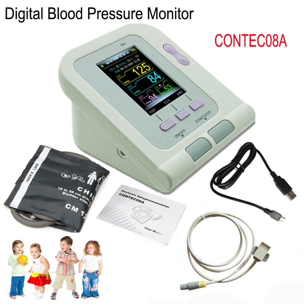 Цифровой прибор для измерения артериального давления CONTEC08A, электронный сфигмоманометр HR PR, датчик SPO2 для взрослых, педиатрических, новорожденных, младенцев