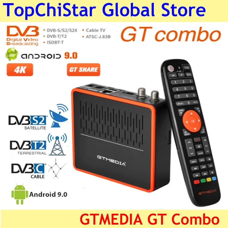 Новое поступление GTMEDIA GT Combo 4K Android 9.0 ТВ-приставка, встроенный WiFi