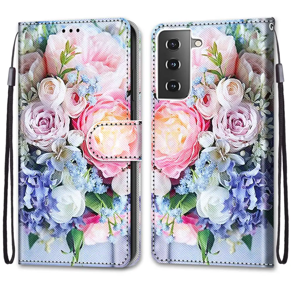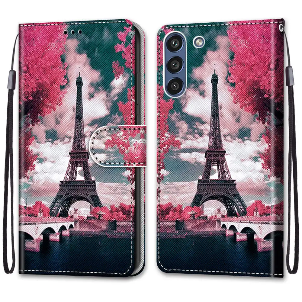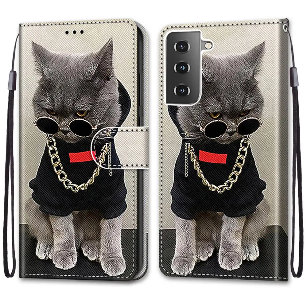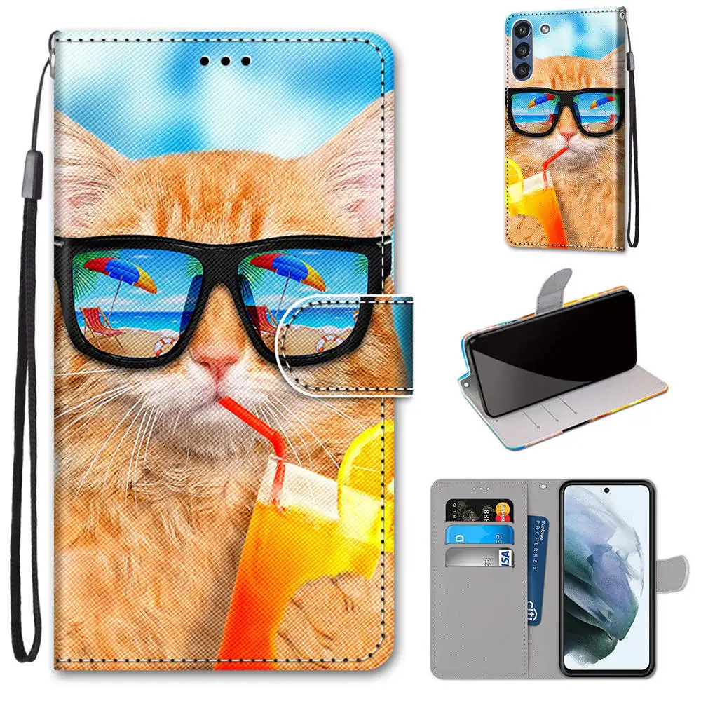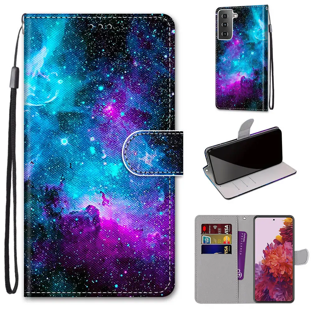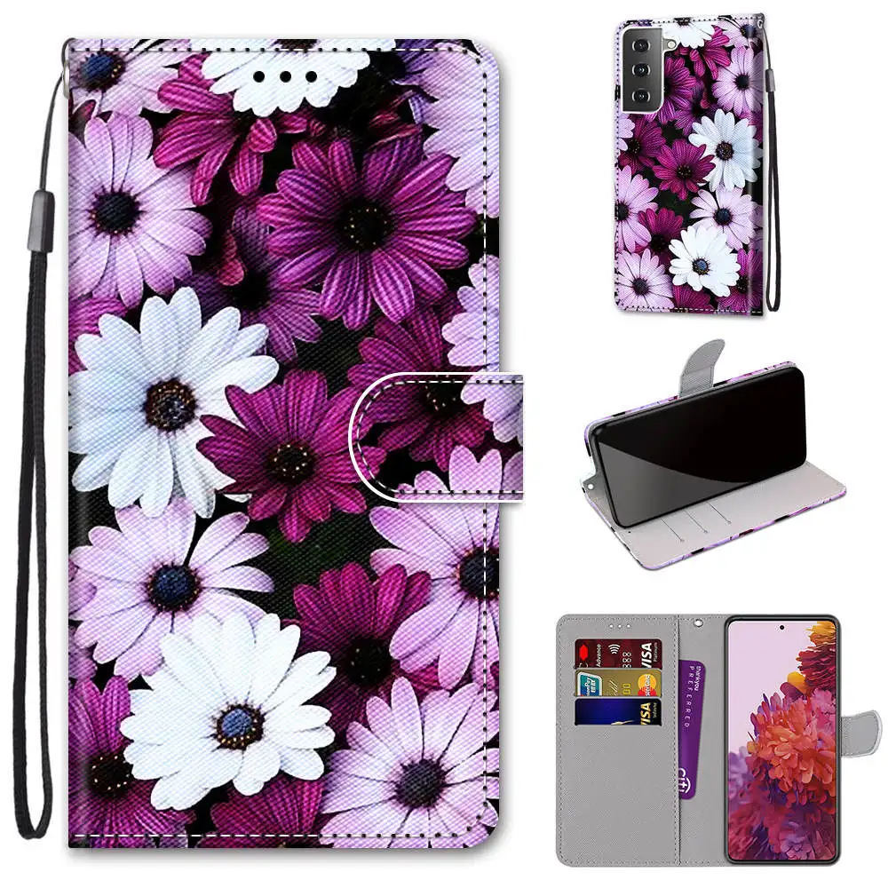 Кожаный чехол-книжка с рисунком для Samsung S9 S10 S20 FE Plus S5 S6 S7 S8 S10E