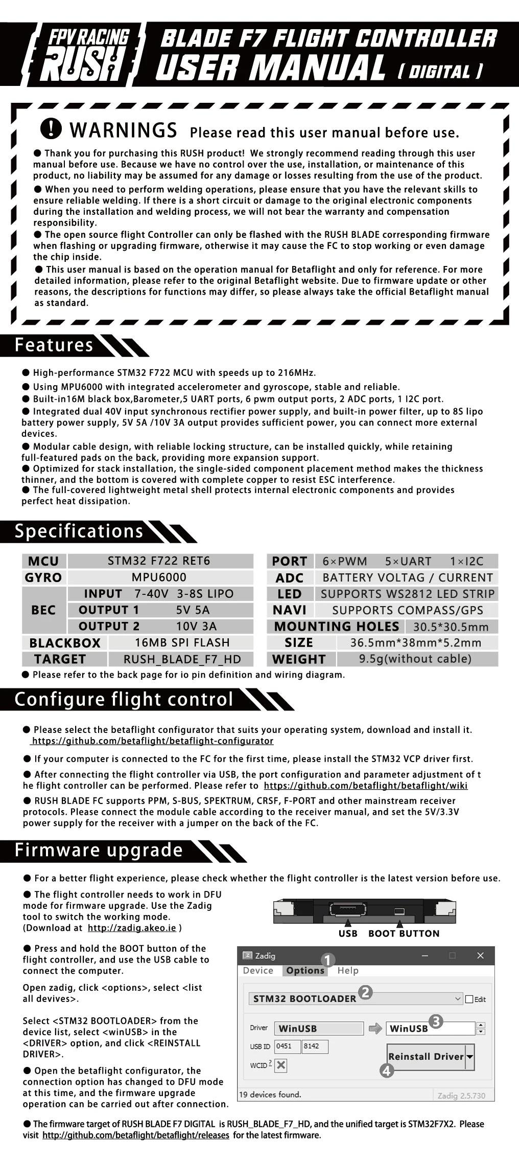 Товар: Полетный контроллер RUSH BLADE F722