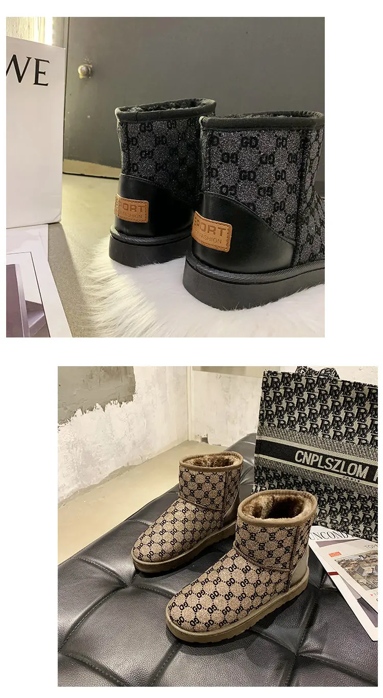 Женские зимние ботинки в Корейском стиле с алфавитом, новинка зимы 2021, бархатные Нескользящие теплые ботинки на толстой подошве в стиле ретро